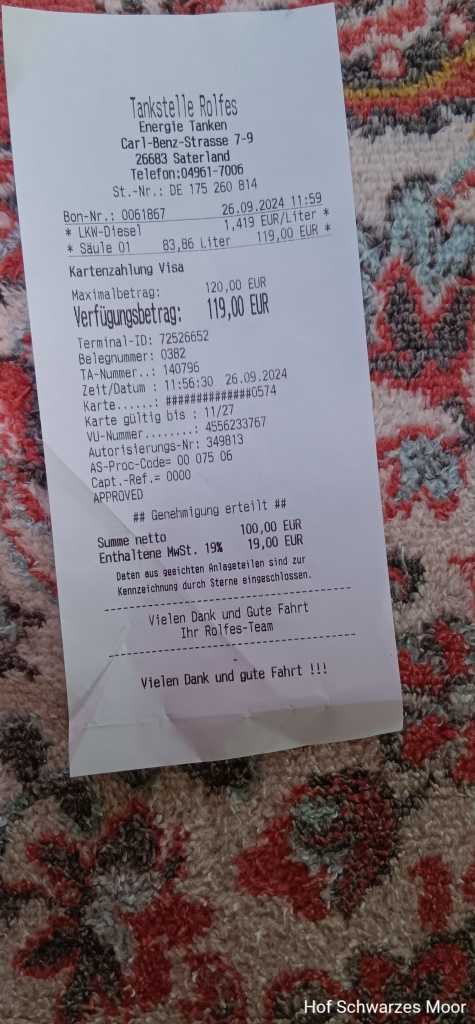 In Saterland finde ich eine echt preisgünstige Tankstelle: 1,419 €/Liter Diesel. Ich weiß gar nicht, worüber unsere ganzen Ampelgegner so rummeckern und -schwurbeln?
