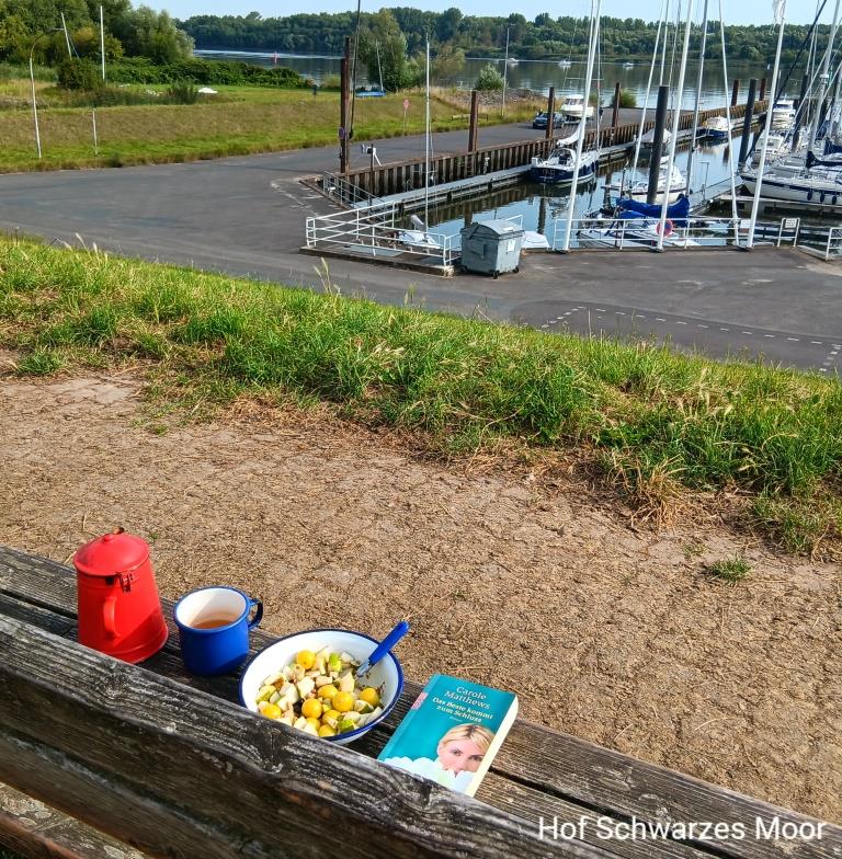 Den restlichen Tag nutze ich bei wechselndem Sonnen- und Regenwetter meine Reisetagebuch zu vervollständigen, Bilder zu sortieren und bearbeiten und immer wenn der Akku leer ist, zu lesen. Ich habe immer noch Lesestoff aus dem Bücherschrank in Forst (siehe weiter oben).