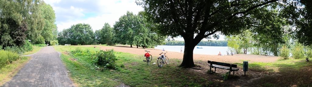 Ich merke sofort, dass ich durch meine knappe Woche am Heeder See verwöhnt bin. So ein klares Wasser wie dort finde ich hier nicht vor. Auch keine lustige Tikki Bar mit Terrasse und Biergarten. Hier ist am Badestrand ein Döner Grill, der auch ein gutes Eis anbietet. So wandern wieder drei Kugeln in meinen Bauch.