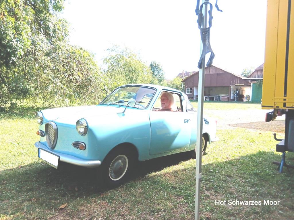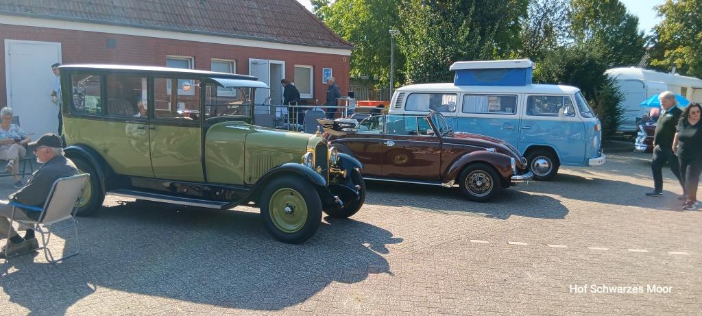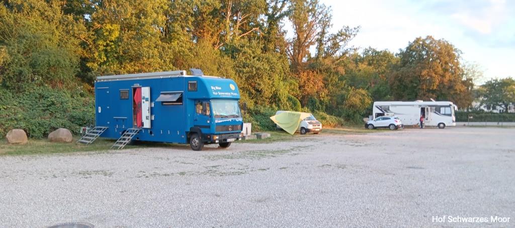 Und am Nachmittag läuft hier noch ein Kurzhauber auf. Die beiden Reisenden sind auch schon älteren Baujahrs und schon viel rumgekommen. Die wollen mit ihrem Auto morgen nach Hamburg rein. Da kann ich mir was schöneres vorstellen.