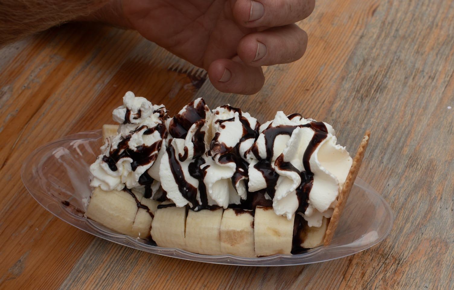 Später geselle ich mich dann noch zu ein paar Österreichern in der der Eisdiele und verzehre meinen üblichen Bananen Split.