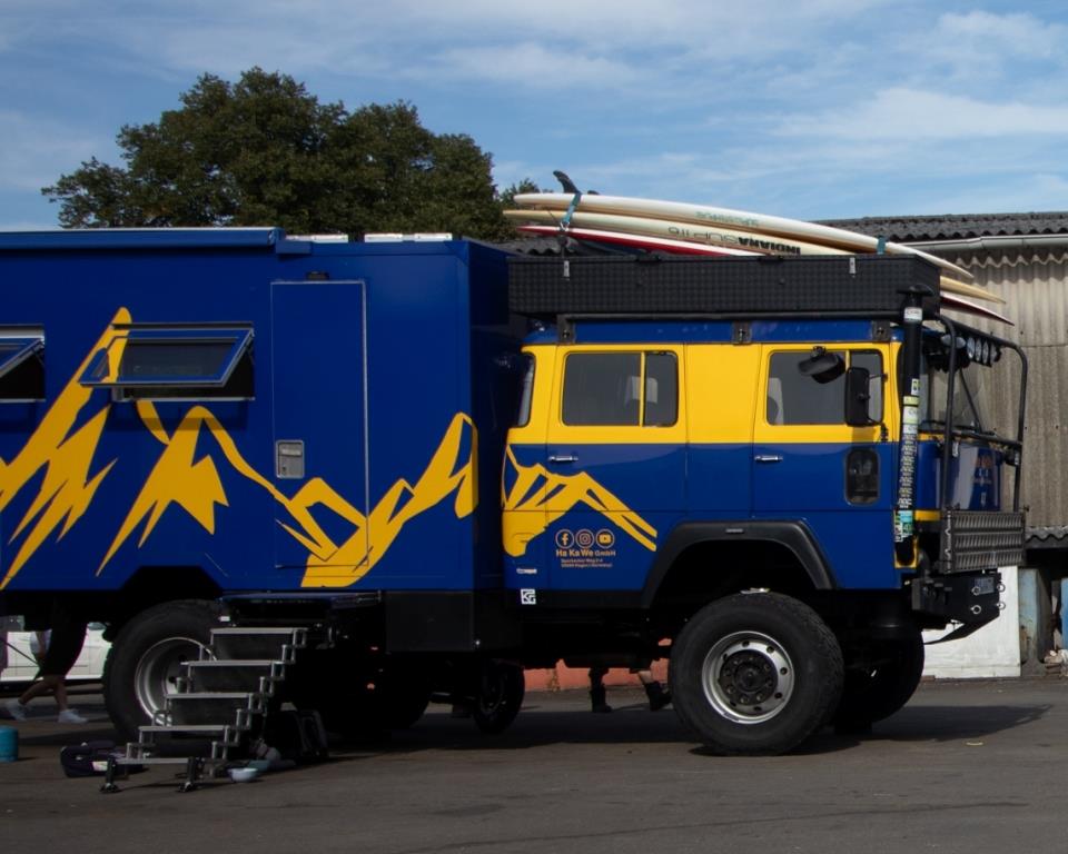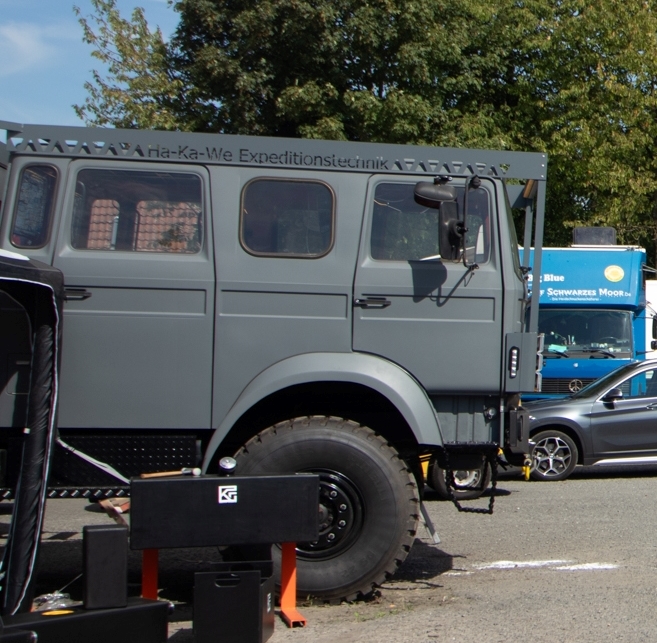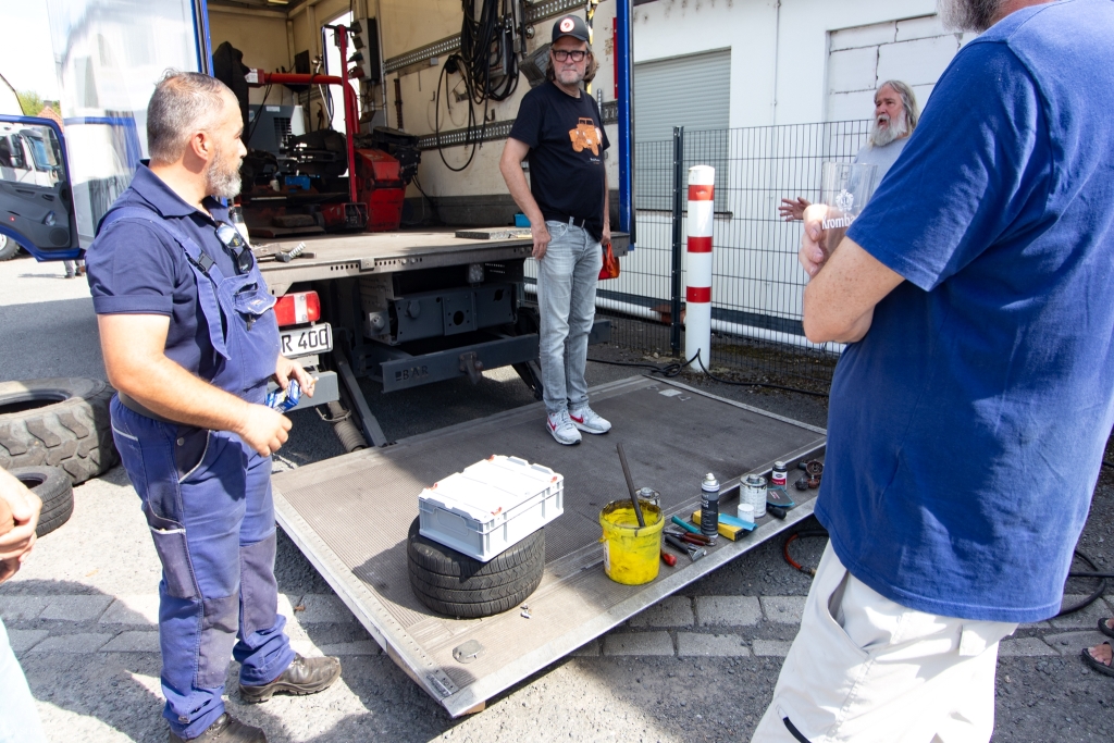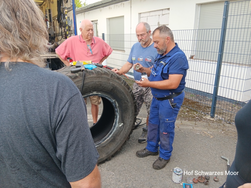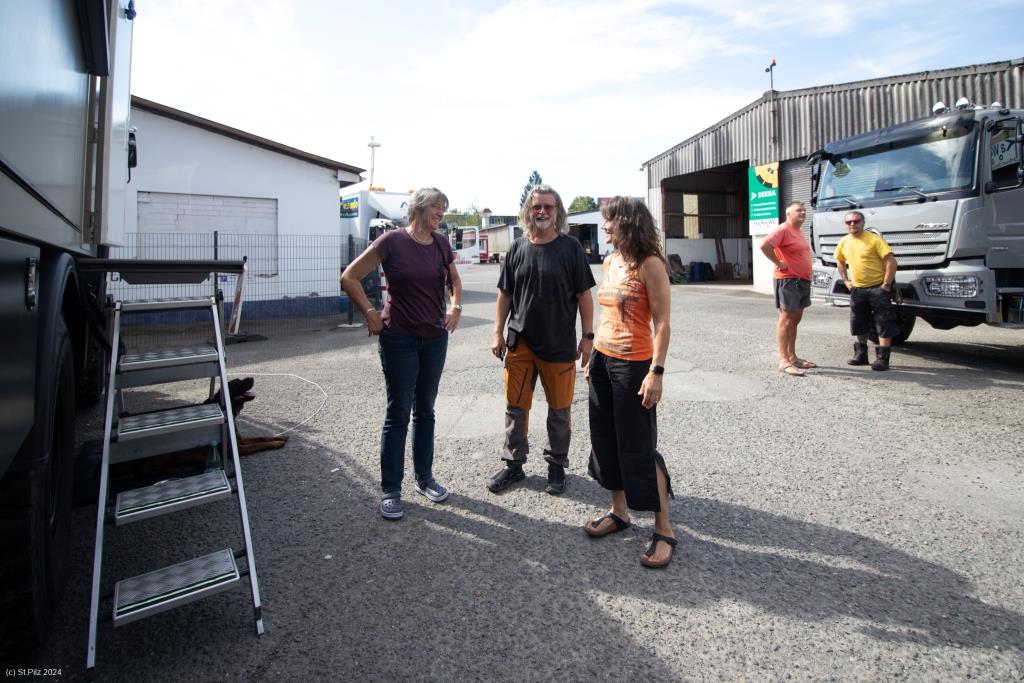 Heute geht es los – die letzten Tage war ich noch mit Ernten, Reparaturen in Haus und Hof und dem Beladen von Big Blue beschäftigt. Und – wie sollte aus auch anders sein – auf den letzten Drücker muss ich noch an Big Blue schrauben. Der Auspuff zwischen Turbolader und Auspuffklappenbremse ist mal wieder durchgerostet. Andreas, mein Lieblings-LKW-Schrauber hat ein Einsehen und hilft mir bei der Reparatur, obwohl er eigentlich gar keine Zeit hat. So habe ich deswegen keine Verspätung meines Reisebeginns zu befürchten.