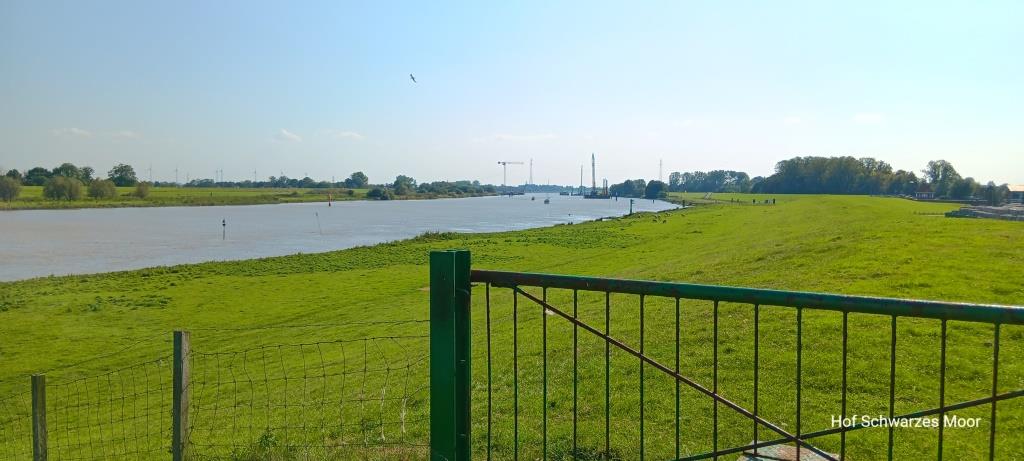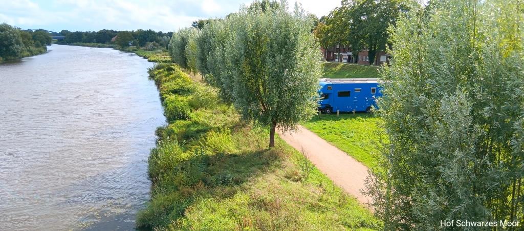 Etwas stromab finde ich noch den Biolandhof Bockholter Beete, der neben seinen Schafswiesen tatsächlich schöne Plätze anbietet. Leider ist der Boden zurzeit für mich zu weich. Und der recht gut bestückte Hofladen hat leider auch nichts in den Regalen, was mich zurzeit reizt. Ist aber ein schöner Platz, allerdings ohne Schiffe Gucken. Aber ist ja nicht jeder so gestrickt wie ich.