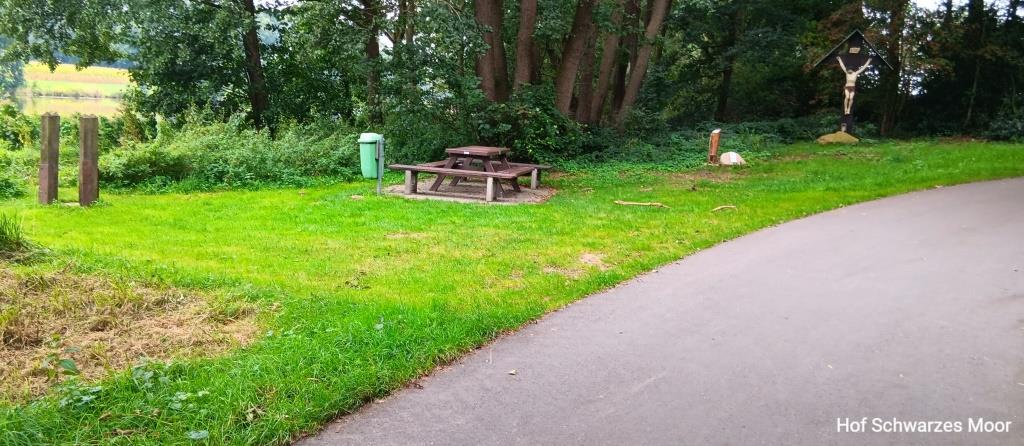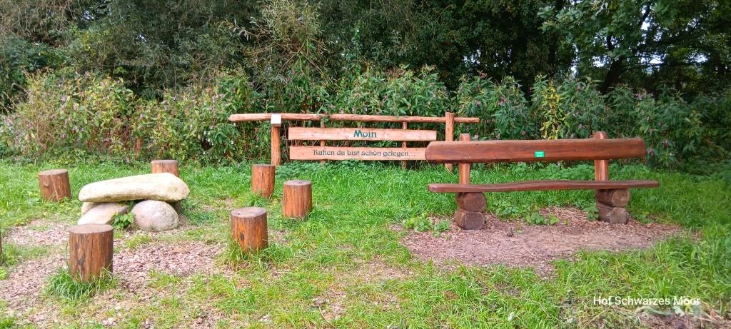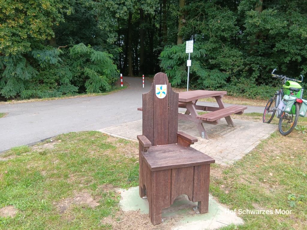 Am Radweg haben die ansässigen Heimatvereine Rast- und Ruheplätze eingerichtet. Teilweise thematisch mit einigem Witz versehen. Und sogar etwas Gastronomie findet ich auch.
