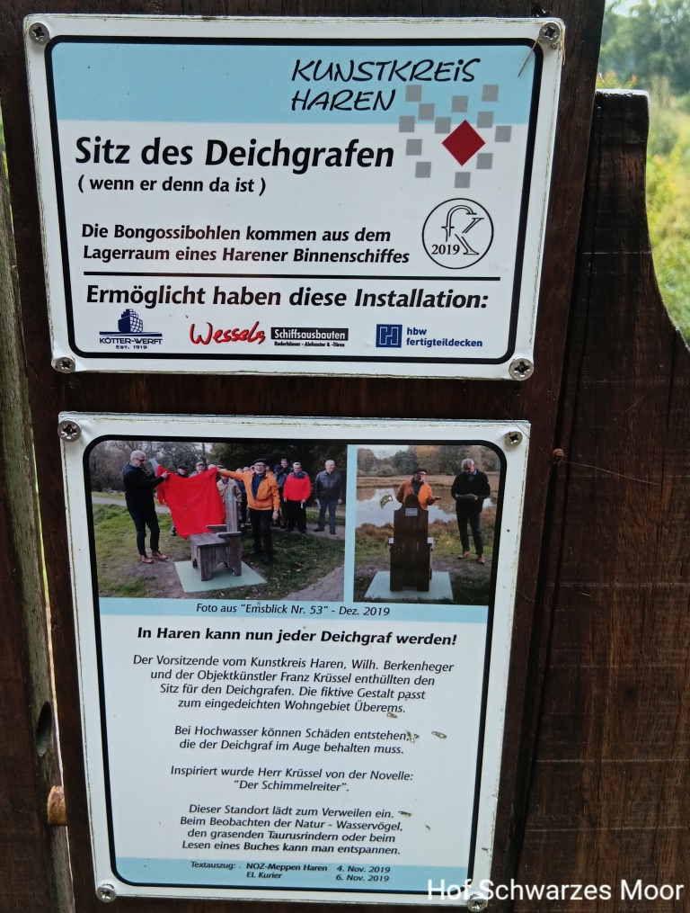 Irgendwie gibt es hier dann auch noch eine Gedenkstätte für die Opfer des Nationalsozialismus. Diese erinnert stellvertretend an 15 Konzentrationslager, die die Faschisten im Emsland betrieben haben. Erklärungsbedarf besteht nach meinem Empfinden dafür, warum diese Gedenkstätte vor Jahren von Papenburg hierher verlegt wurde. Sollten da die Papenburger Honoratioren aktiv geworden sein um eine eventuelle inhaltliche und historische Nähe zu ihren Unternehmen zu verschleiern? Ist ja mal eine Google-Recherche wert.