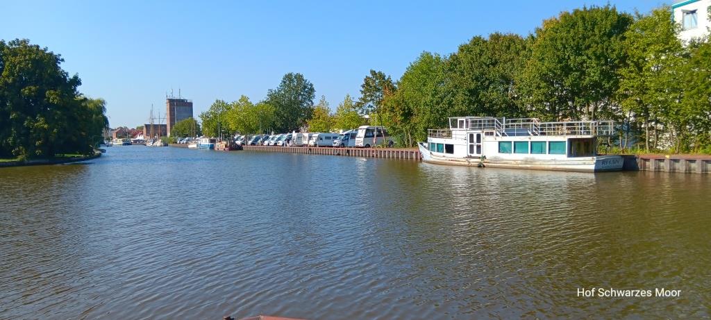 Die Ankunft in Weener ist schon sehr „informativ“. Denn wegen einer Baustelle und einer Veranstaltung im Ort werde ich durch die kleinen innerörtlichen Sträßchen zum Alten Hafen gelotst. Trotzdem finde ich den Landvergnügen Platz hinter dem Hafen 55 sofort.