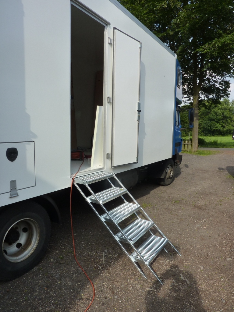 Ich baue die Treppe für die Werkstatt fertig. Zum Feuerverzinken geht sie erst nach unserer Albanientour. Dann geht es an den Unterfahrschutz.
