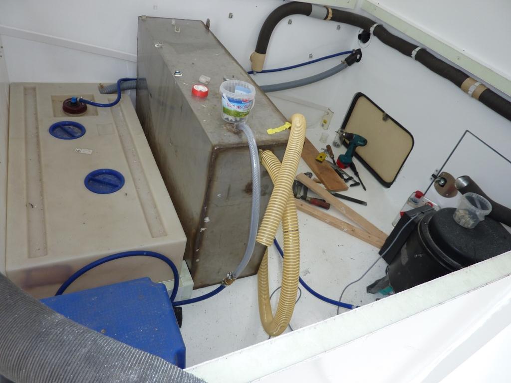Die Trinkwasseranlage mit ihren zwei Tanks kommt auch voran. Die Tanks stehen, sind gesichert und größtenteils auch schon angeschlossen.