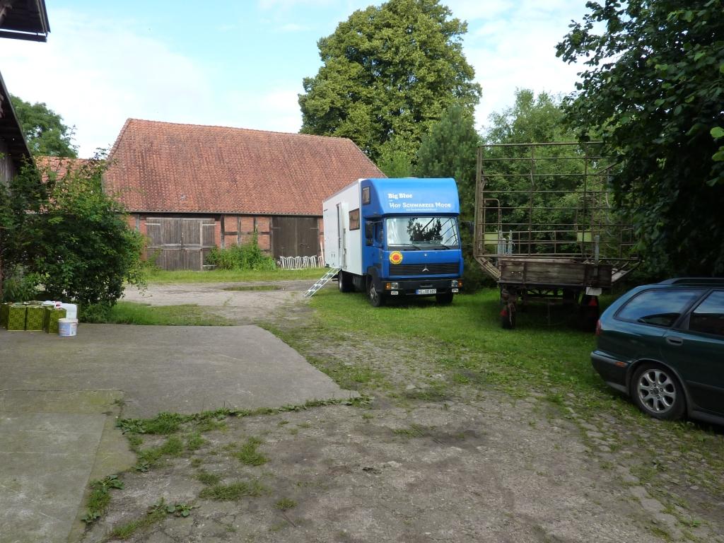 Heute sind wir das erste Mal mit Big Blue wieder unterwegs. Zu Besuch bei Anna und Andreas bei der Wesermühle. Diese setzen dieses Jahr mit ihrem Wesermühlenfest – hier waren wir früher auch immer mit unserem Imbisswagen – aus und laden dafür den Inner Cirkle zu einer Privatfete ein. Und da hat dann Big Blue auch eine seiner wichtigen Aufgaben: Wenn wir fetenmäßig getrunken haben uns ein warmes Bett zu bieten.