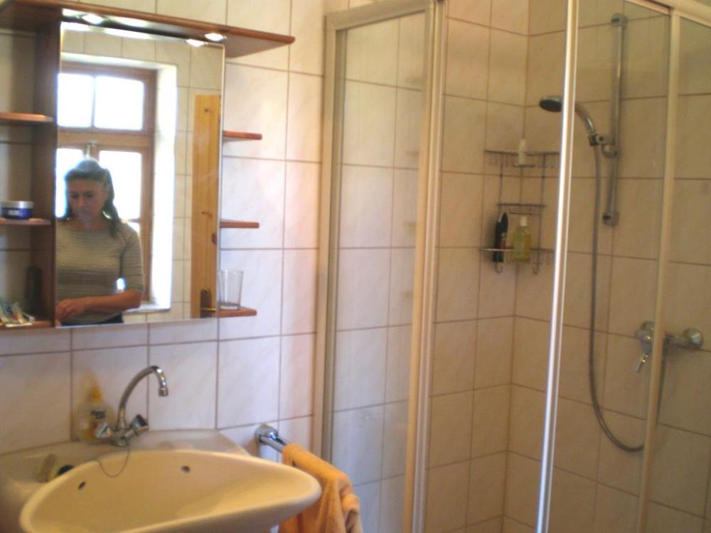 Im Badezimmer auf der gleichen Etage findet ihr Dusche und Badewanne, Waschbecken mit Spiegelschrank sowie WC. Eine Waschmaschine rundet das Angebot ab.