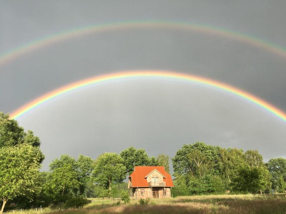 Es steht eine Liege-, Sitz- und Spielwiese von circa einem Morgen (2500 m²) zu eurer eigenen Verfügung. Dort befindet sich auch eine Grill- und Lagerfeuerstelle.