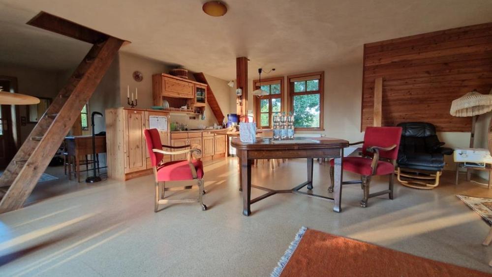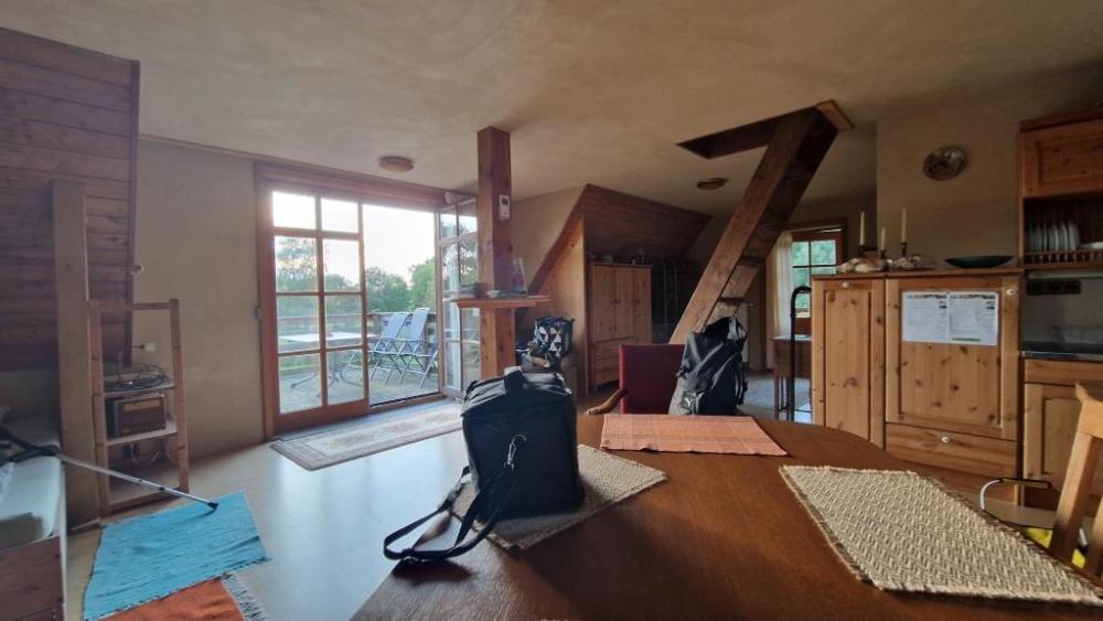 Die Wohnung ist nach bauökologischen Gesichtspunkten gebaut. Lehm- und Holzwände erzeugen ein einmaliges Raumklima.