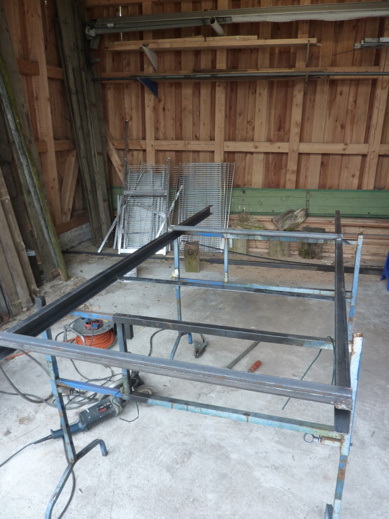 Aber beim Abholen konnten wir uns noch einmal die beiden Seitenwände und das Dach anschauen. Die Türen sind auch schon eingebaut. Und der neue Hilfsrahmen ist schon beim verzinken. Jetzt geht es ja richtig schnell.