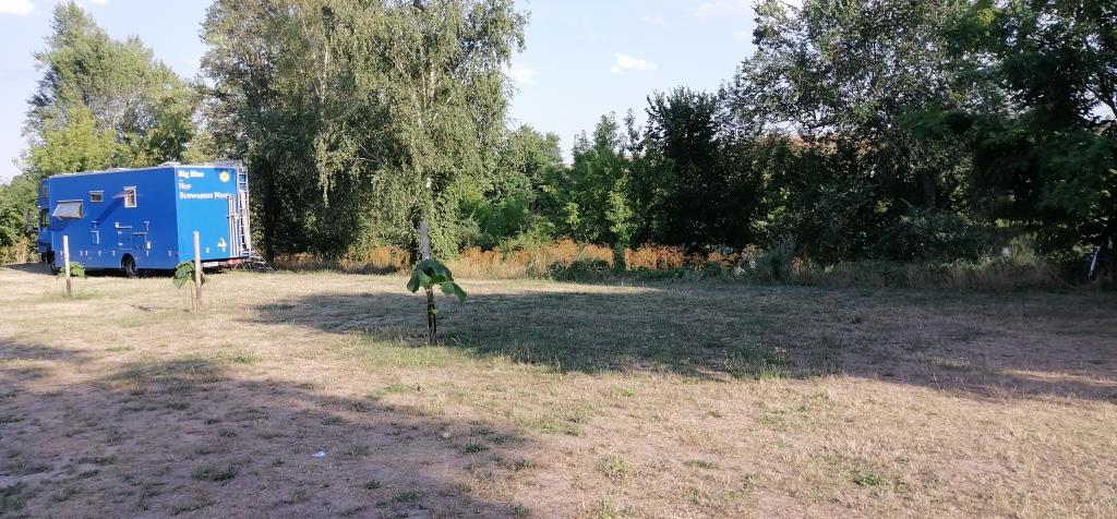 Aber der Platz ein Träumchen. Auch wenn er bei p4n, drinsteht. Der Besitzer steht gerade vor seinem Anwesen und erklärt mir wo ich mich hinstellen kann. Später bekomme ich sogar noch einen halben Liter gezapftes kaltes Bier. Obwohl heute das Café Saalekiez geschlossen hat.